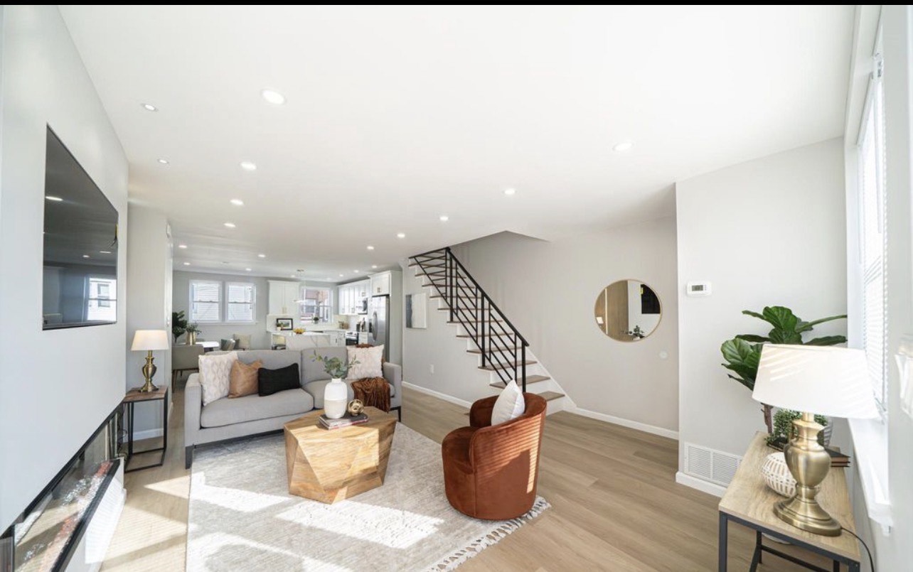 Offer furnished rooms and shared common areas, including beds, seating, kitchen access, and essential household items.